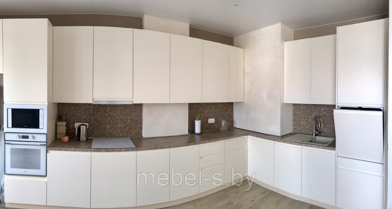 Фасад МДФ матовая, постформинг Слотекс, выдвижные системы Тандем GTV полного выдвижения с доводчиком, ручка фрезерованная в торце. Особенность данного проекта- посудомоечная машина, поднятая на уровень столешницы.