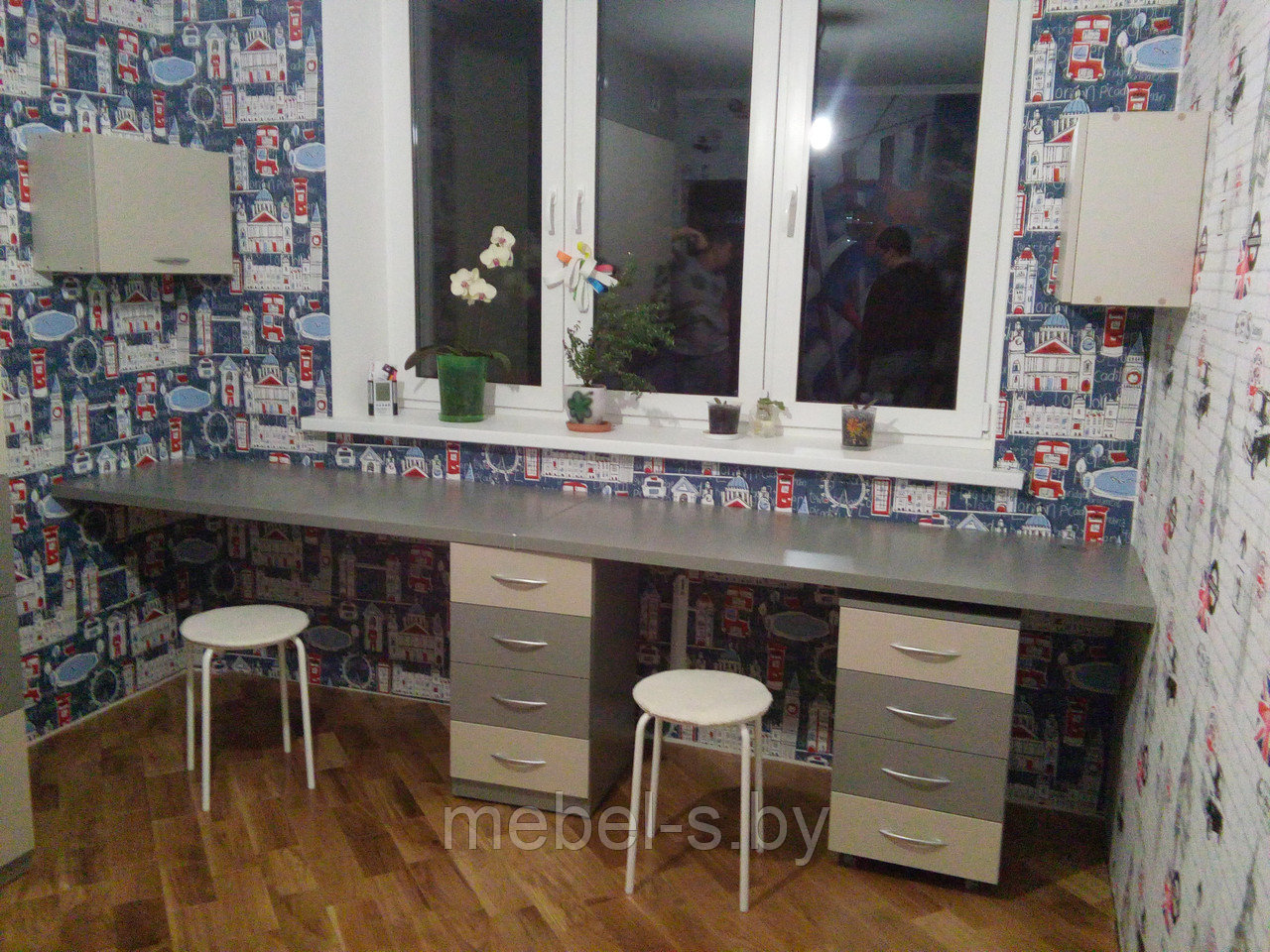 Столешница рабочая утолщенная (3000*600)+ две тумбы: стационарная (400*450*720) и на колесах (400*450*650)